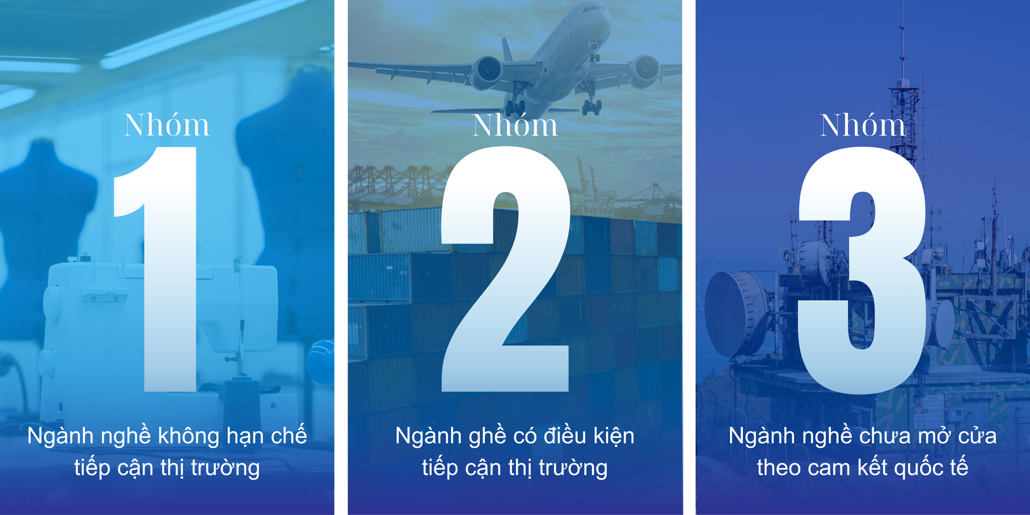 - Ngành nghề chưa mở cửa theo cam kết quốc tế: Hoặc bị giới hạn theo lộ trình mở cửa WTO, CPTPP, EVFTA…